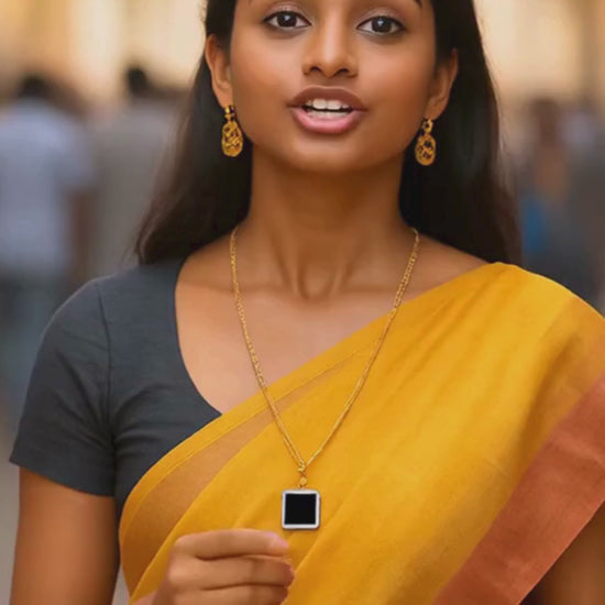 Black Square Crystal Pendant Rose Gold Necklace For Women