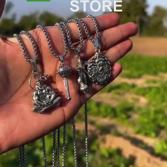 Product Name: Lord Hanuman Chain With Pendant (Pack of 4) Package Contains: It has 4 Chains With Pendant Material: Oxidized Silver Size: Free Size Occasion: Casual Combo: Pack of 4 Ideal for: Men Weight: 300 gm