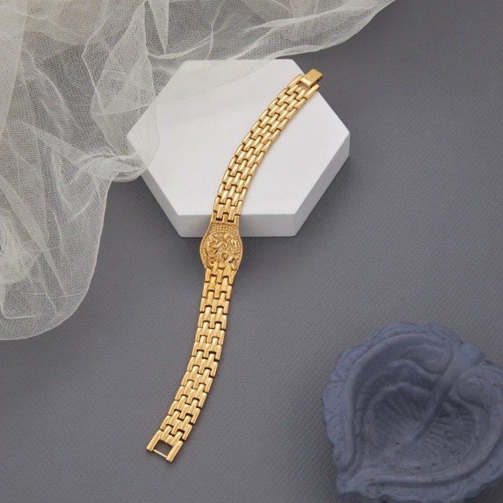 Premium Ganesh Gold Bracelet For Men (8 Inch) Made from a High-Quality Metal wrist bracelet with a luxury look, perfect for any occasion, Pull it to help open the bracelet, it’s easy to take on and take off.