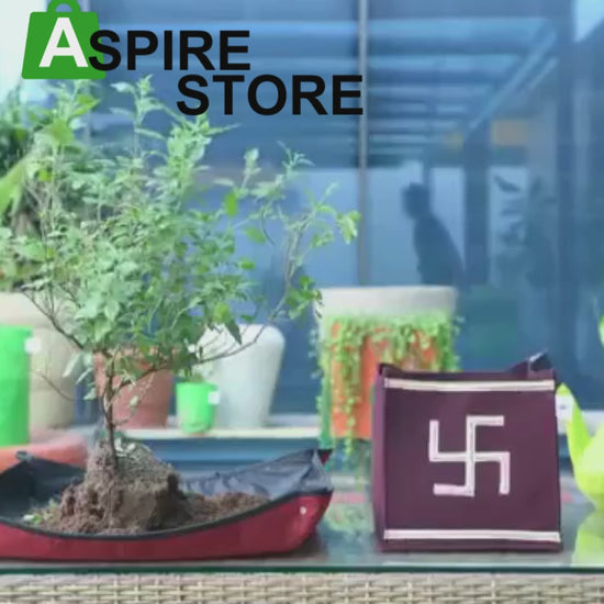 ? Do you live in cities where you don't get enough space to grow Tulsi plants for your Morning rituals , then here is the solution - presenting Planteria GeoFabric Grow bag designed specifically for your Tulsi Ritual needs. Crafted from eco-friendly materials and direct from the manufacturer, these grow bags with Holy Swastik Symbol are not only sustainable but also designed to last. With a breathable fabric that promotes healthy root development and a smart drain system that eliminates the need for holes, these bags are a must-have for any gardener looking to optimize their Tulsi plant growth. .
